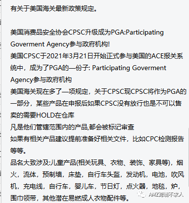 最近大家在圈内应该都看到了这张图片,CPSC(美国消费品安全协会)升级为参与政府机构,意味着美国海关在某些产品申报后还必须通过CPSC放行,否则货物会被扣留。