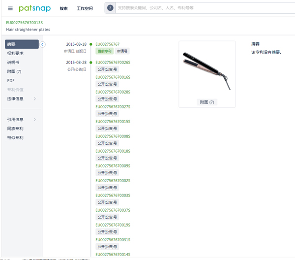 关于这款产品情况到底如何,我们针对产品,在欧盟也进行了外观专利检索,确实找到了它的专利信息!其专利编号为:EU0036116560002S
