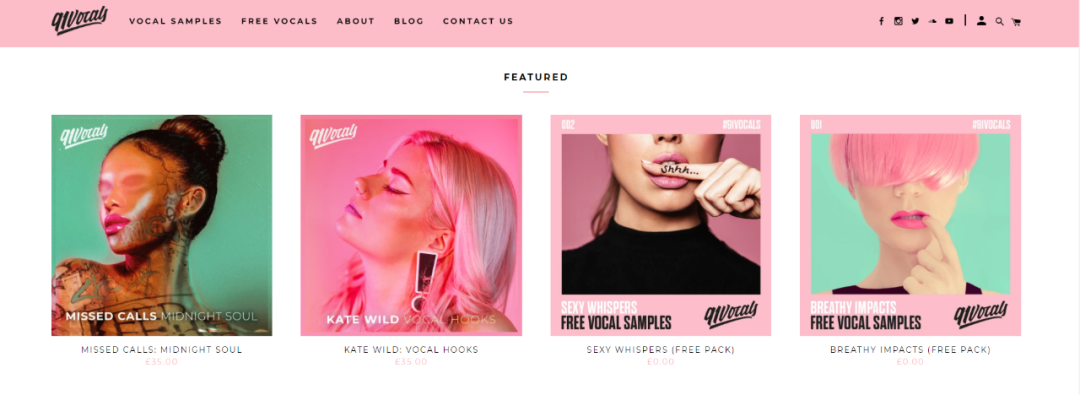 虚拟产品的展示方式与传统产品不同,以91 Vocals为例,整个站点的图片通过使用强烈的色彩和前卫的视觉效果来吸引买家的关注。这样的方法优势在于,无需使用过多的文字,他们就可以传达产品的感觉,从而满足用户的满意度。