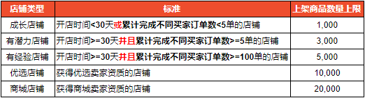 1. 不同卖家类型上架商品数量限制