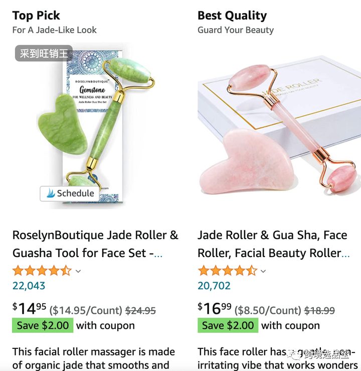 亚马逊翻了几页,卖的基本是基础款的脸部刮痧工具,这个产品目前在亚马逊上的价格段大概在15$-20$之间,产品的单月购买量也有2600+的订单。