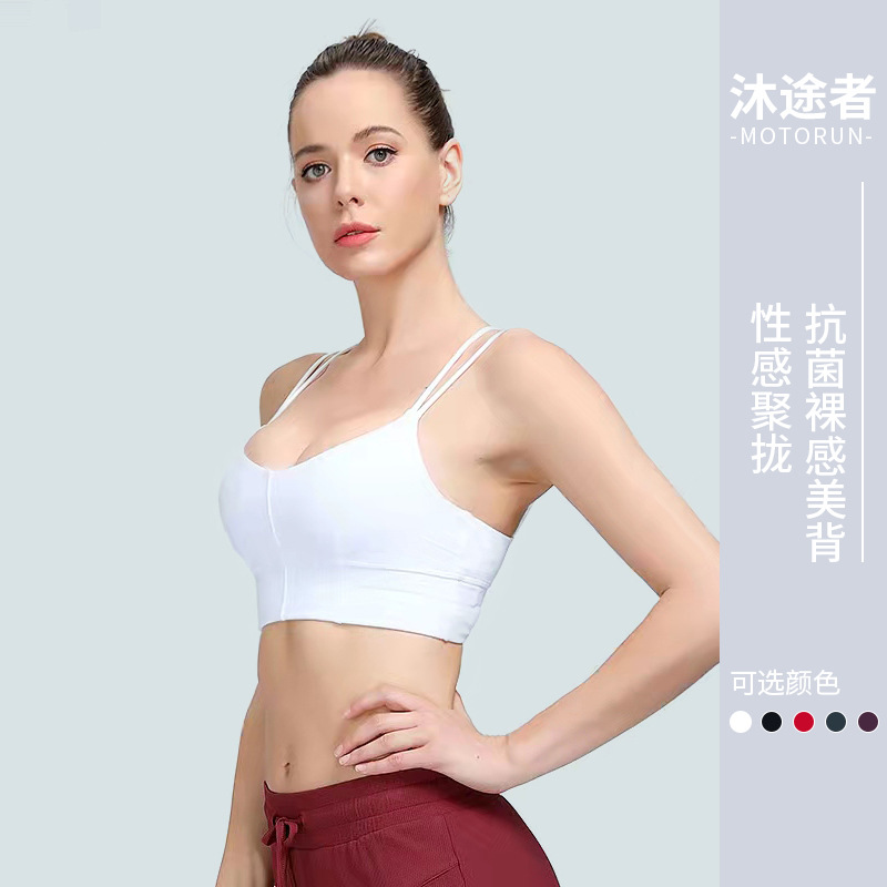 2022裸感瑜伽背心女 美背吊带胸垫运动内衣跑步健身文胸修身显瘦