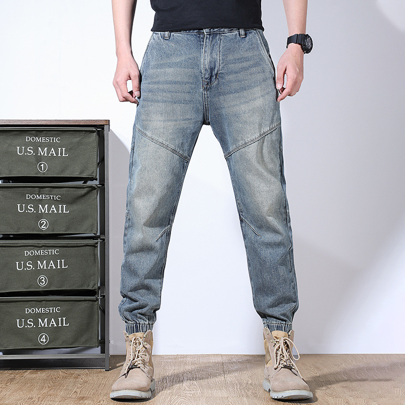 有蓝|2022春季男士新款日系简约复古牛仔裤潮牌辑线宽松束裤