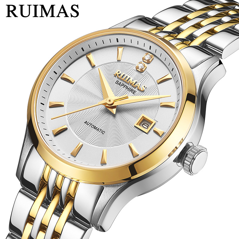 网红爆款瑞马仕RUIMAS镶钻全自动机械表商务时尚防水女士手表6755