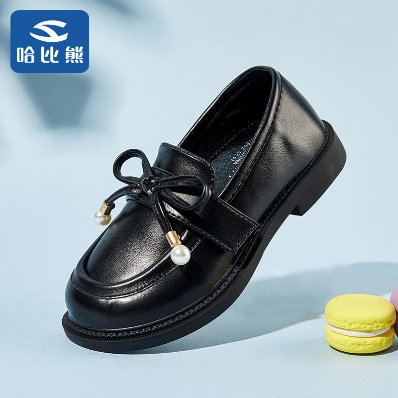 哈比熊童鞋女童蝴蝶结皮鞋2022春新时尚女孩英伦风黑色单鞋公主鞋