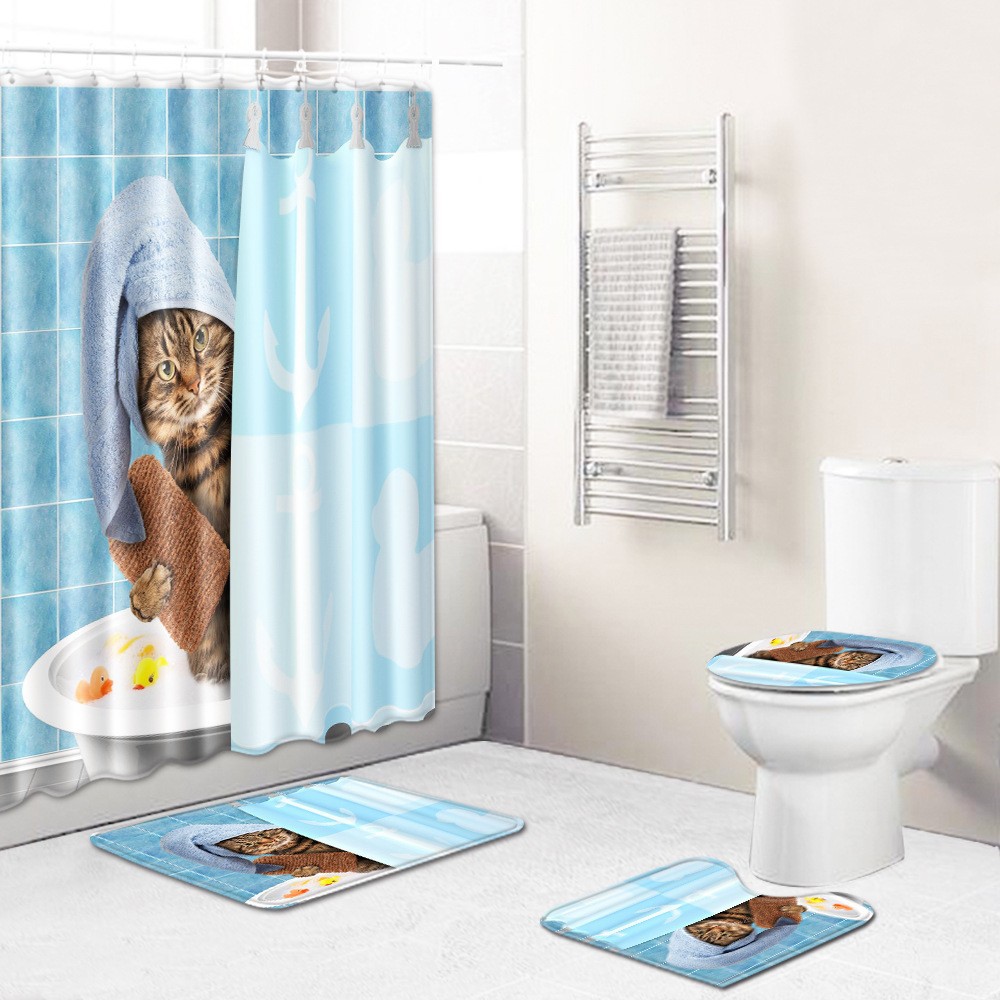 新款卡通动漫3D系列地垫印花防水家居浴帘浴室四件套三件套代发