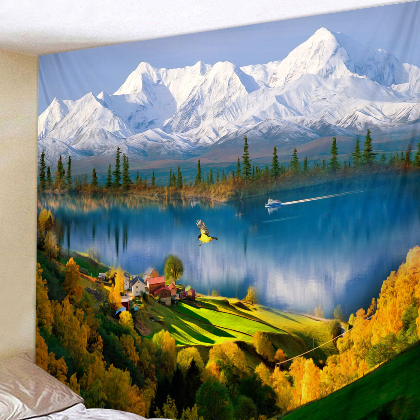 跨境电商批发 数码印花风景油画挂毯墙面装饰背景布挂布卧室壁挂