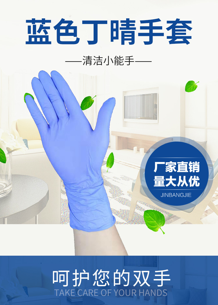 100只盒装手套一次性蓝色丁晴手套丁腈手套耐酸碱检查实验美容