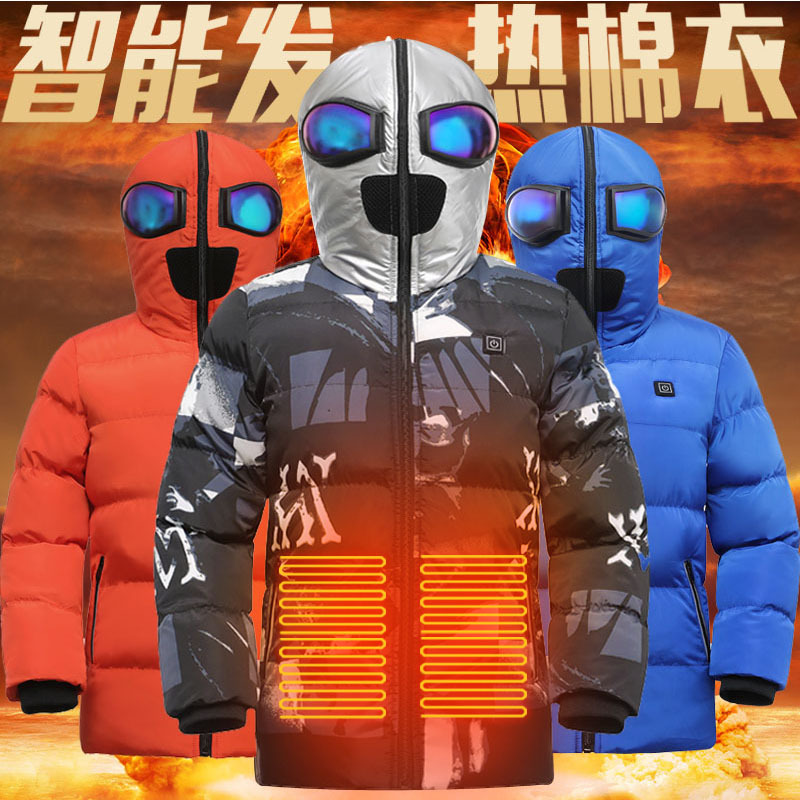 跨境儿童发热棉服USB充电加热棉衣男女童电热智能保暧滑雪服外套