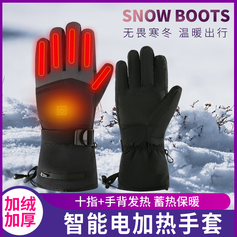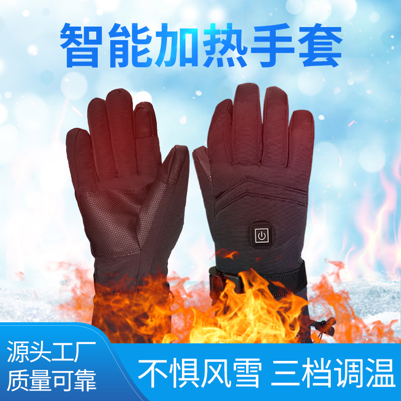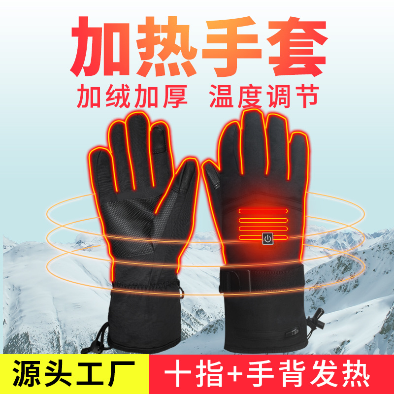 跨境加热手套冬季发热手套保暖户外滑雪电热手套男女充电手套暖手