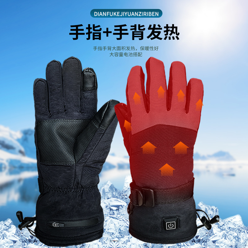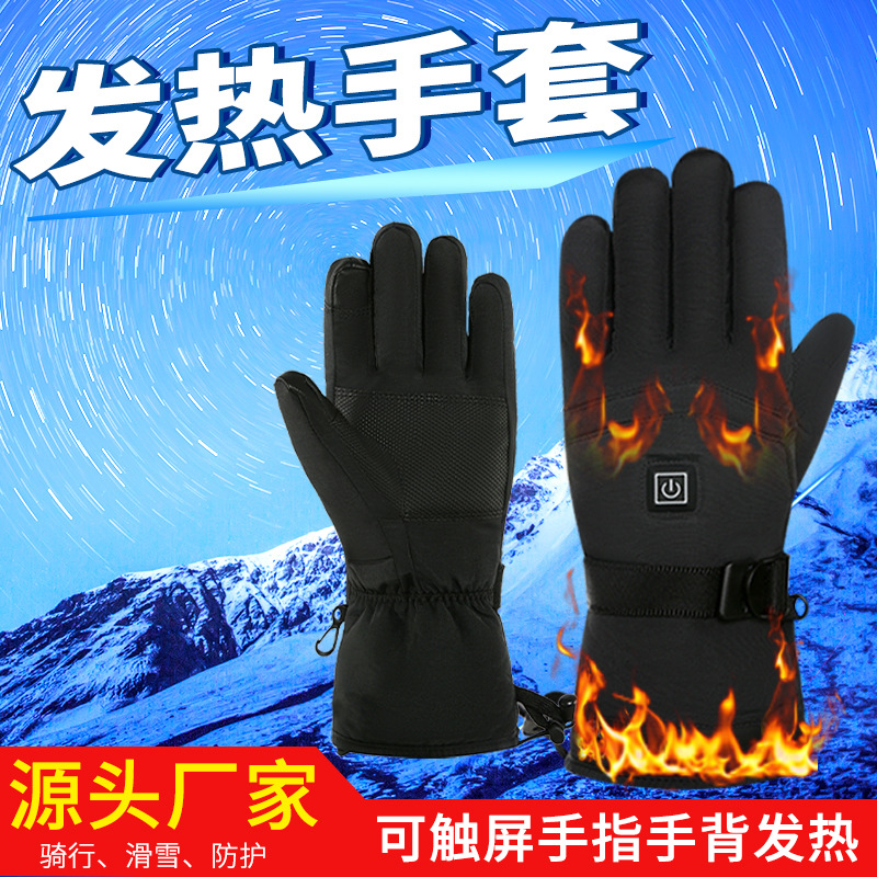 跨境发热手套男女户外滑雪充电摩托车加热手套触屏防泼水电热手套
