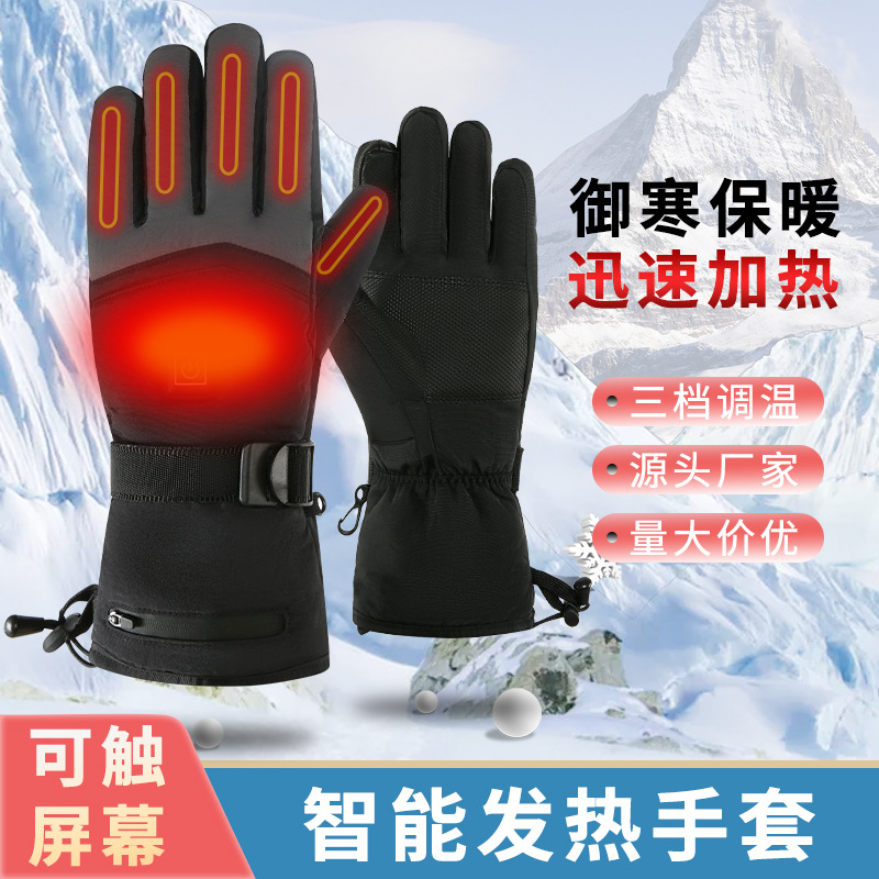 跨境加热手套户外滑雪骑行加厚电热手套触屏充电防寒发热手套男女