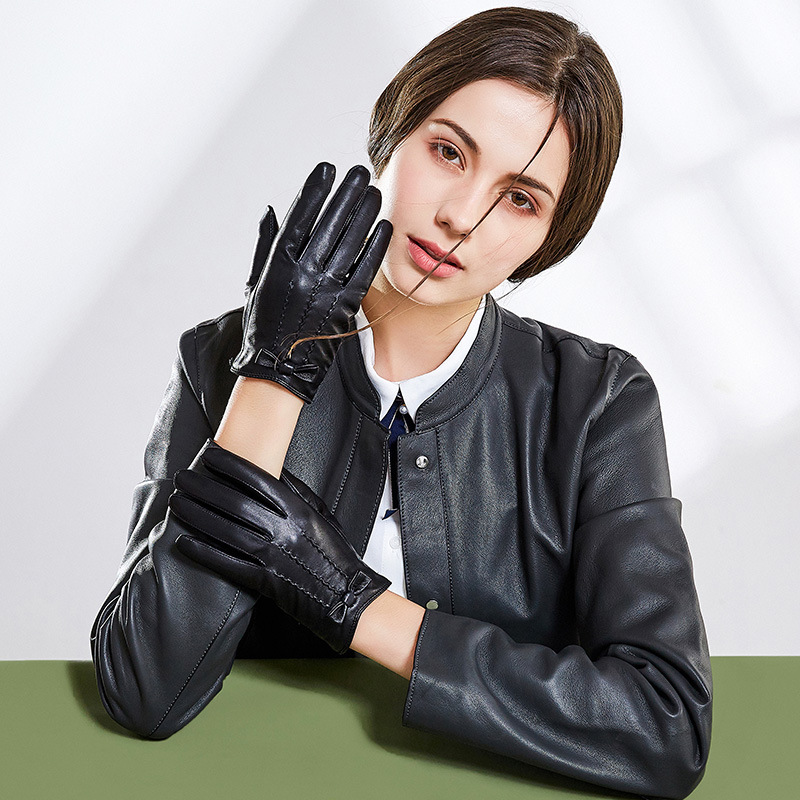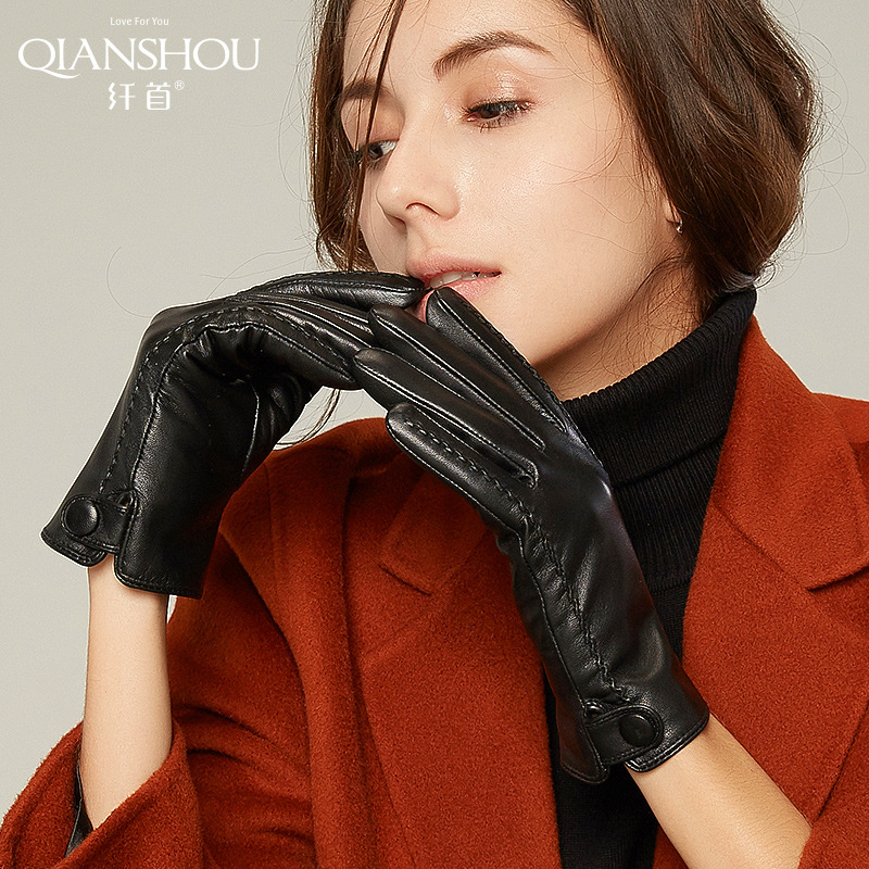 头层羊皮手套女秋冬加绒加厚触屏防寒款骑行开车真皮保暖显瘦手套