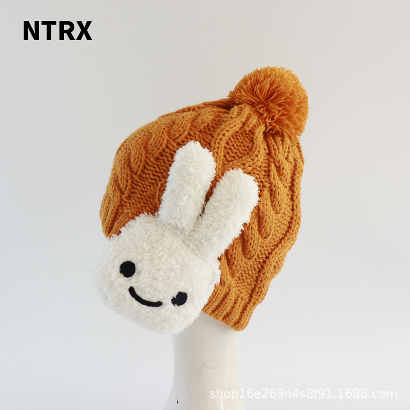 NTRX 秋冬加厚保暖儿童护耳帽子女宝宝冬帽女童可爱立耳朵毛线兔