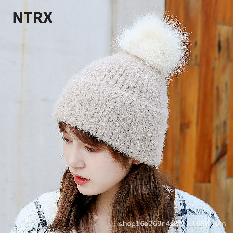 NTRX 毛球帽子女冬深秋可爱甜美潮可翻折冬帽毛绒柔软保暖逛街