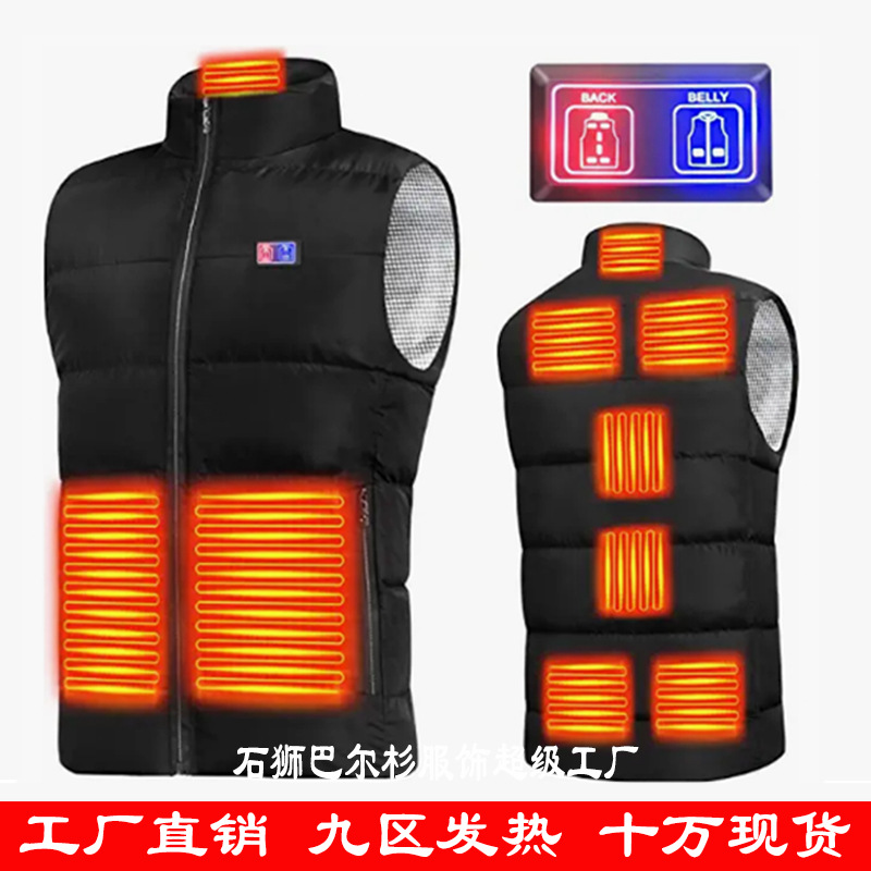 新款智能发热马甲男女士九片充电加热背心USB双控羽绒棉加热马甲