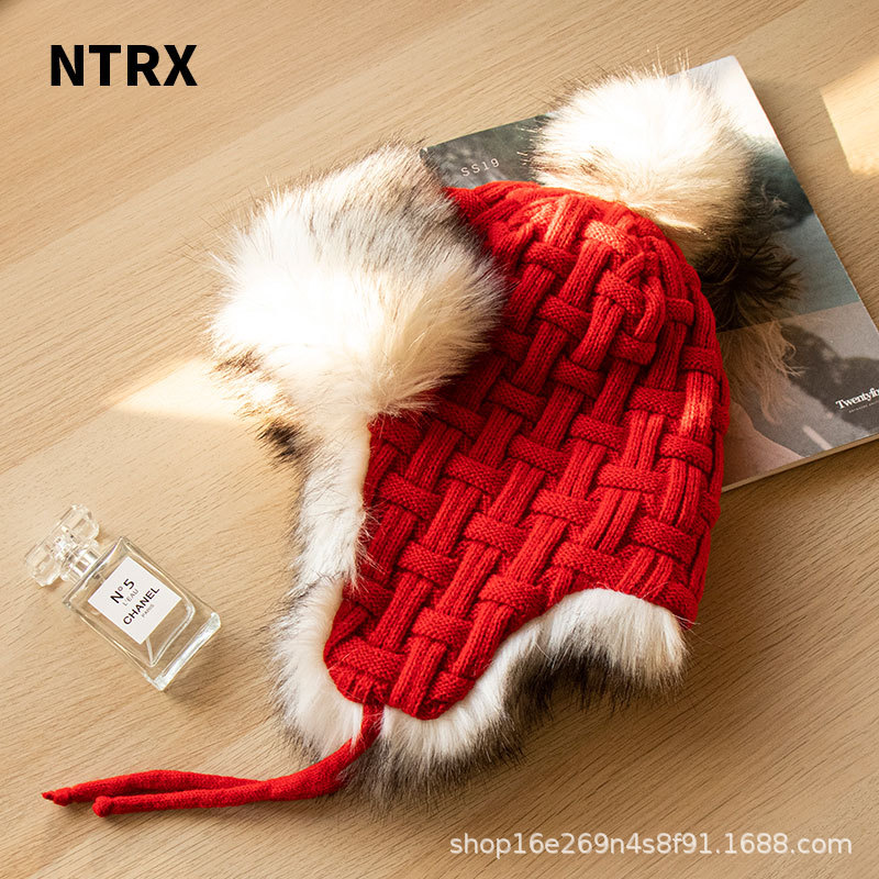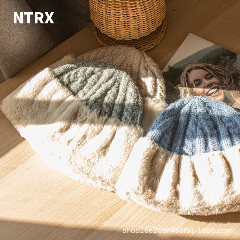 NTRX 秋冬季百搭可爱保暖护耳毛绒帽子女防风加厚混色毛线套头帽