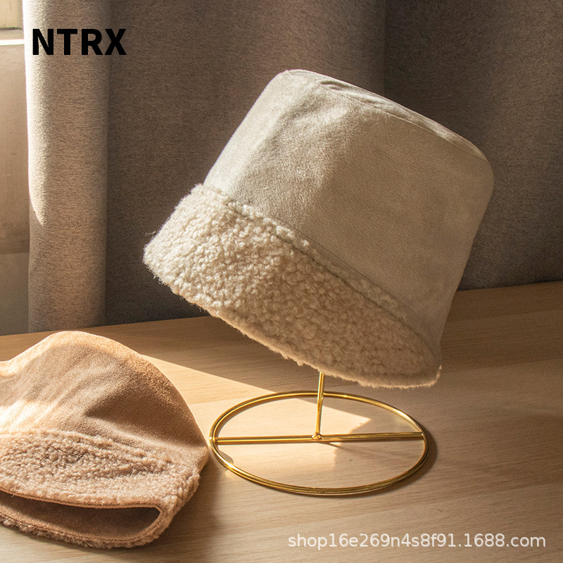 NTRX 日式秋冬保暖麂皮绒渔夫帽女冬韩版百搭护耳毛绒盆帽水桶帽