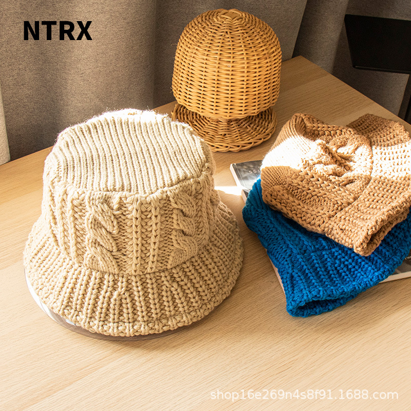 NTRX 秋冬韩版百搭针织渔夫帽女大头围时尚毛线水桶帽防风保暖