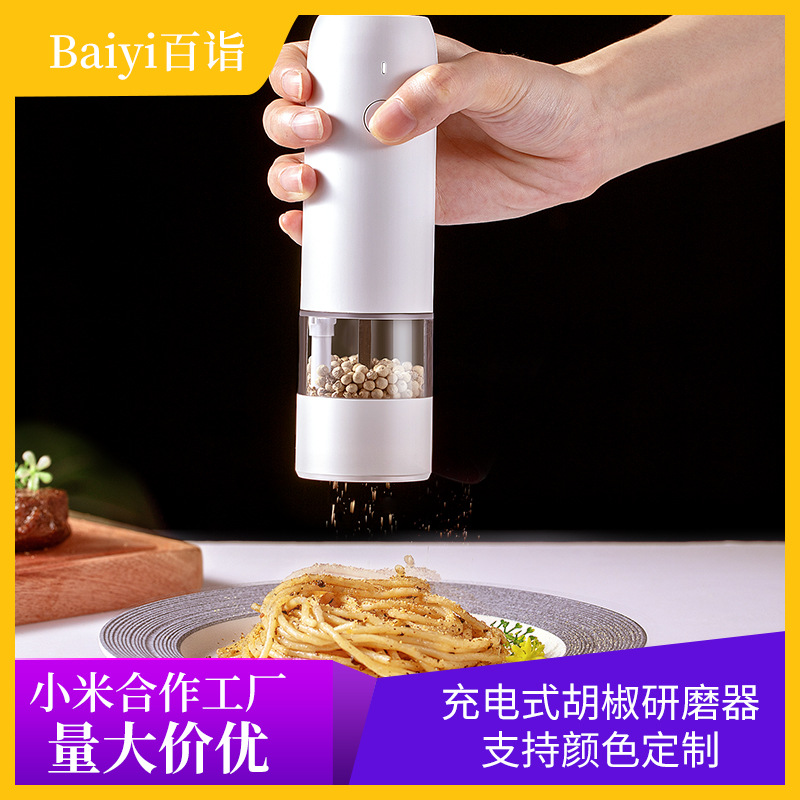 百诣新品厨房工具黑胡椒研磨器电动跨境海盐磨充电式花椒研磨器