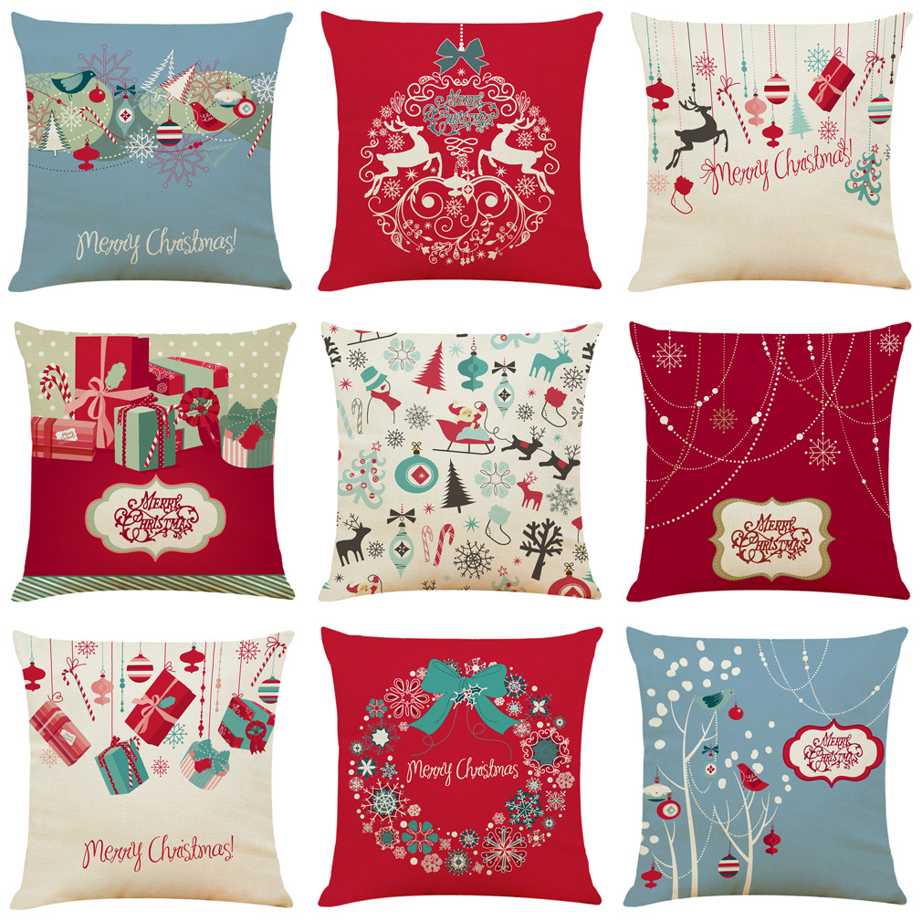 wish 亚马逊热卖新款圣诞节棉麻抱枕套 汽车抱枕家居沙发靠垫定制