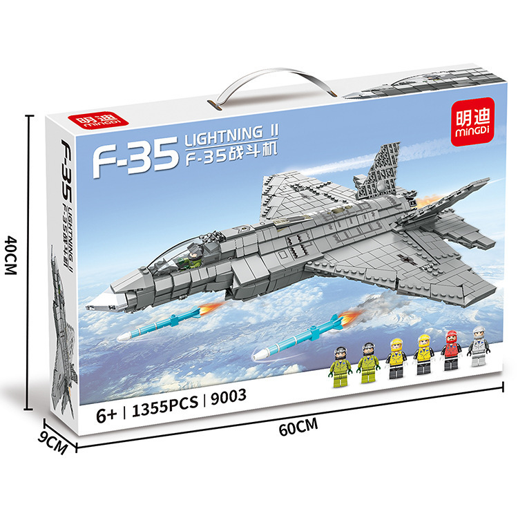 明迪F-35闪电战斗机小颗粒积木儿童拼装军事模型DIY男孩玩具9003