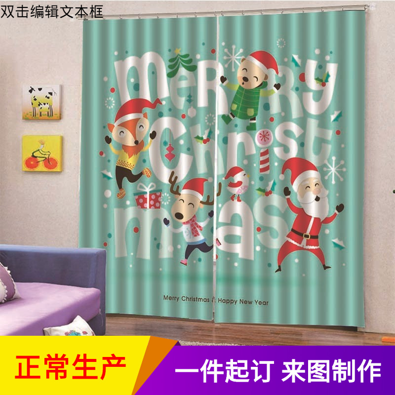 超卡通超夜空圣诞主题窗帘源头厂家卧室酒店贸易电商批发代发