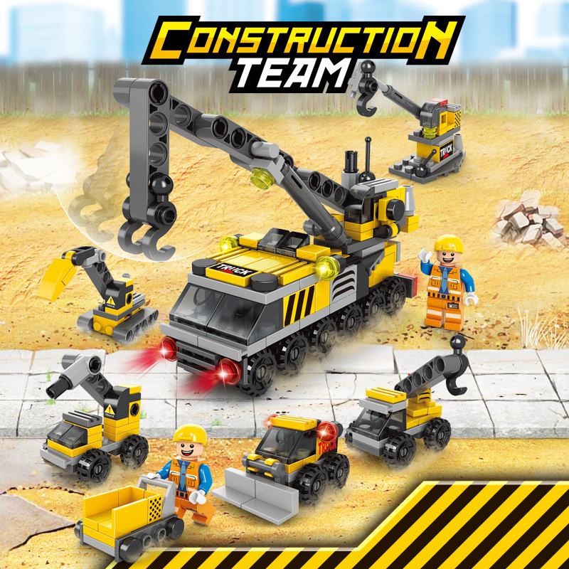 开智城市工程建筑重型吊车叉车推土车儿童益智拼装积木玩具8041-5