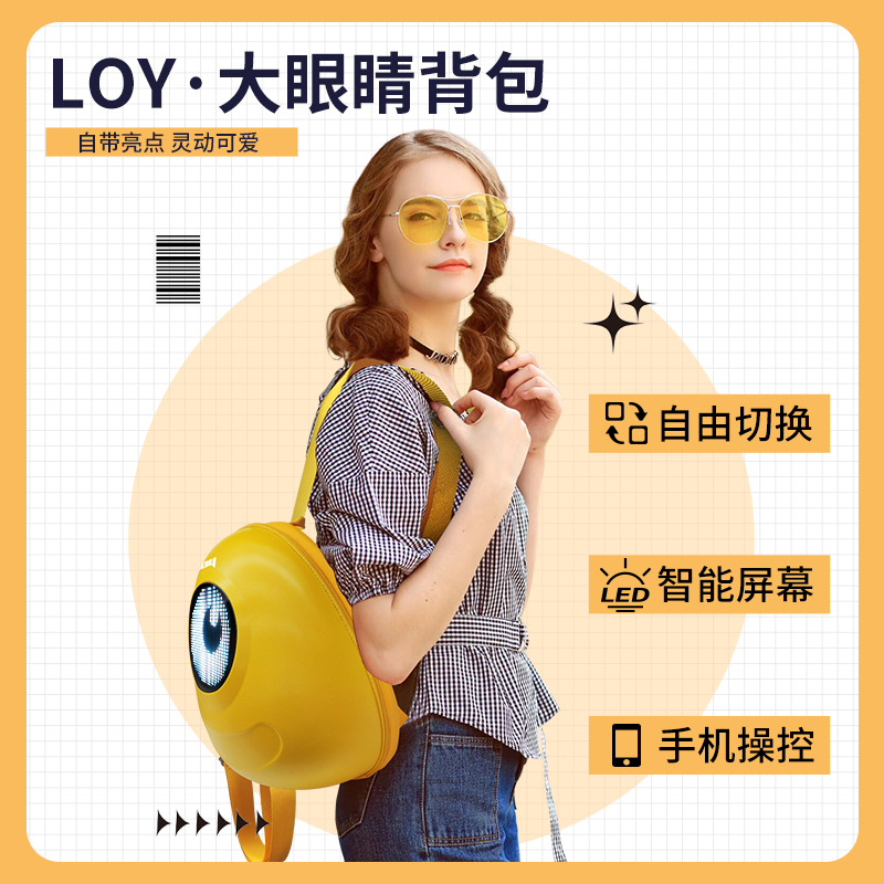 LOY机车双肩背包LED显示屏少女可爱智能安全轻便防水背包
