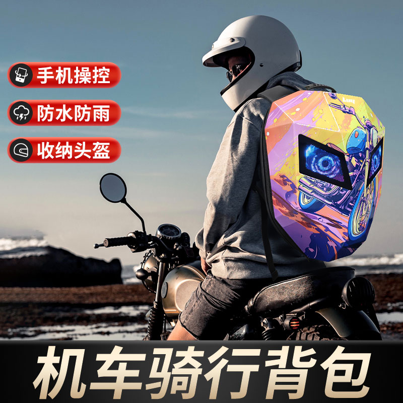 LOY LED双肩包DIY动画女生骑行硬壳除菌防水休闲机车头盔背包