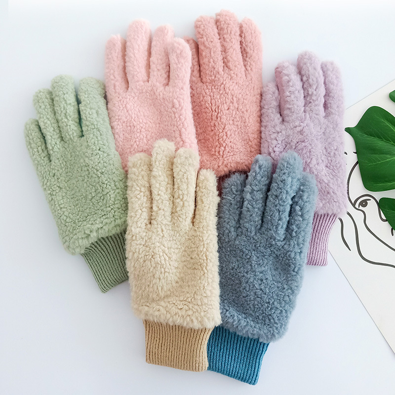 秋冬纯色韩版保暖毛绒手套女冬季分指加绒羊羔绒服饰手套现货批发