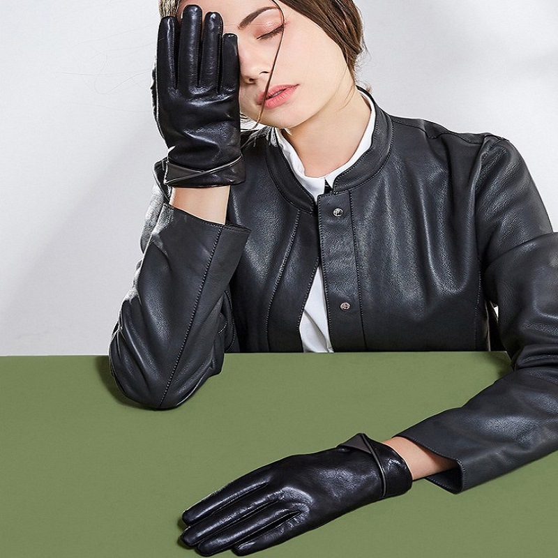 纤首女士薄款真皮手套秋冬季薄款骑车手套 时尚欧美风羊皮手套女