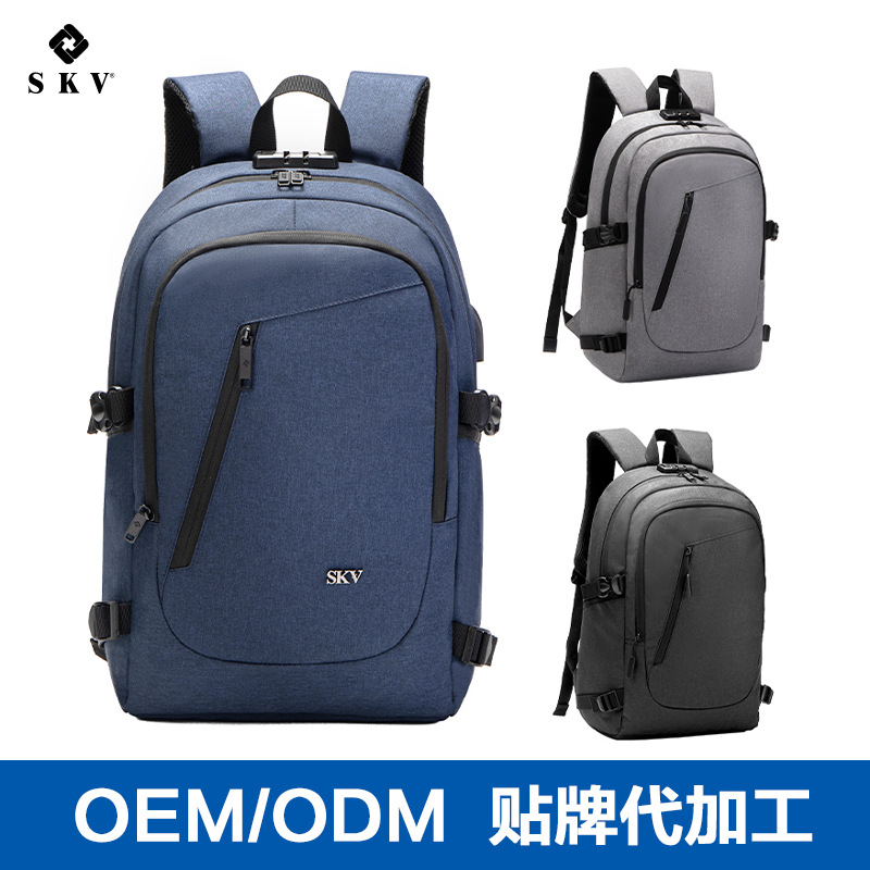 SKV背包旅行包商务电脑包大容量双肩学生书包休闲外贸定制背包男