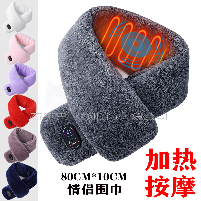工厂批发充电加热男女冬季围巾外贸智能发热纯色护颈震动按摩围脖