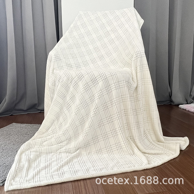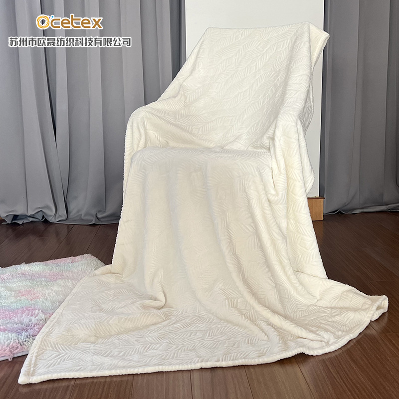 素色提花法兰绒毛毯春秋白色毛毯空调房午休床上用品盖毯厂家批发