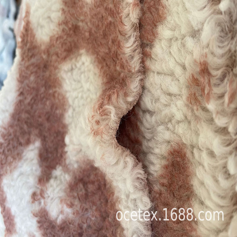 厂家出售印花大羊卷长毛仿羊圈绒布料服装外套玩具颗粒绒面料批发