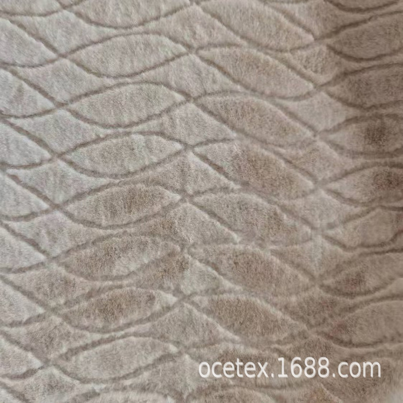 厂家直供竖条雕印兔毛床上用品面料仿兔毛秋冬时装面料儿童玩具布