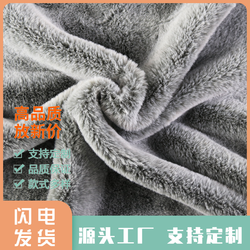 新款超声波兔毛刷直条双层毯冬季加厚亲肤柔软沙发盖毯仿皮草毯子