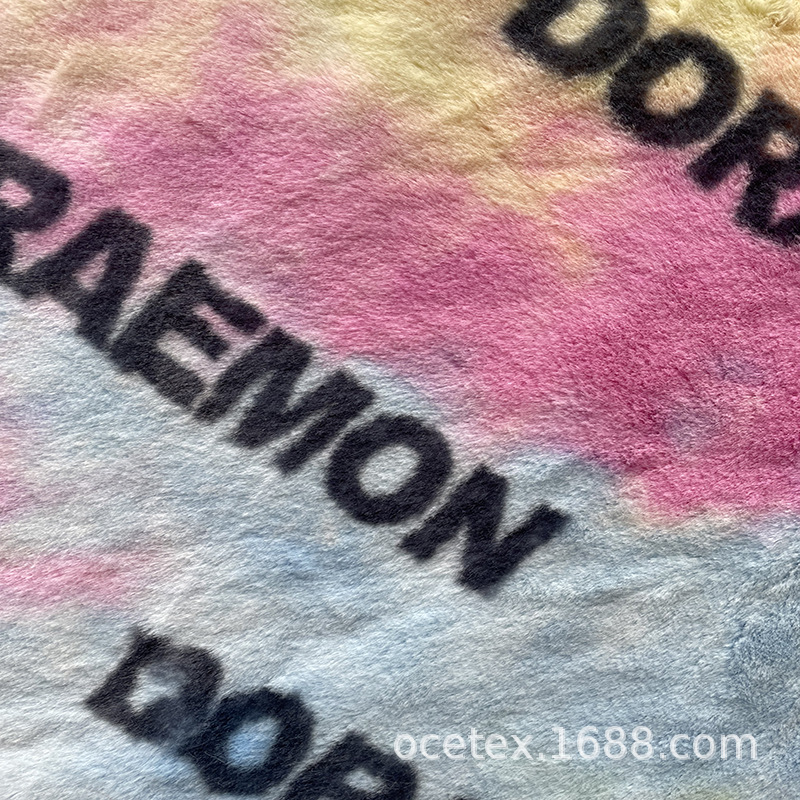 厂家供应扎染印花小兔毛睡衣家居服面料儿童毛绒玩具面料抱枕面料