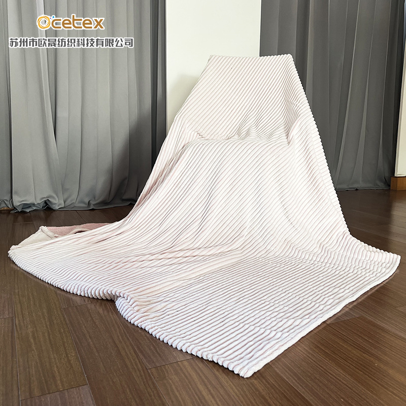 双色抽条法兰绒盖毯家用床上用品粉色毛毯卧室床尾装饰用毛毯批发