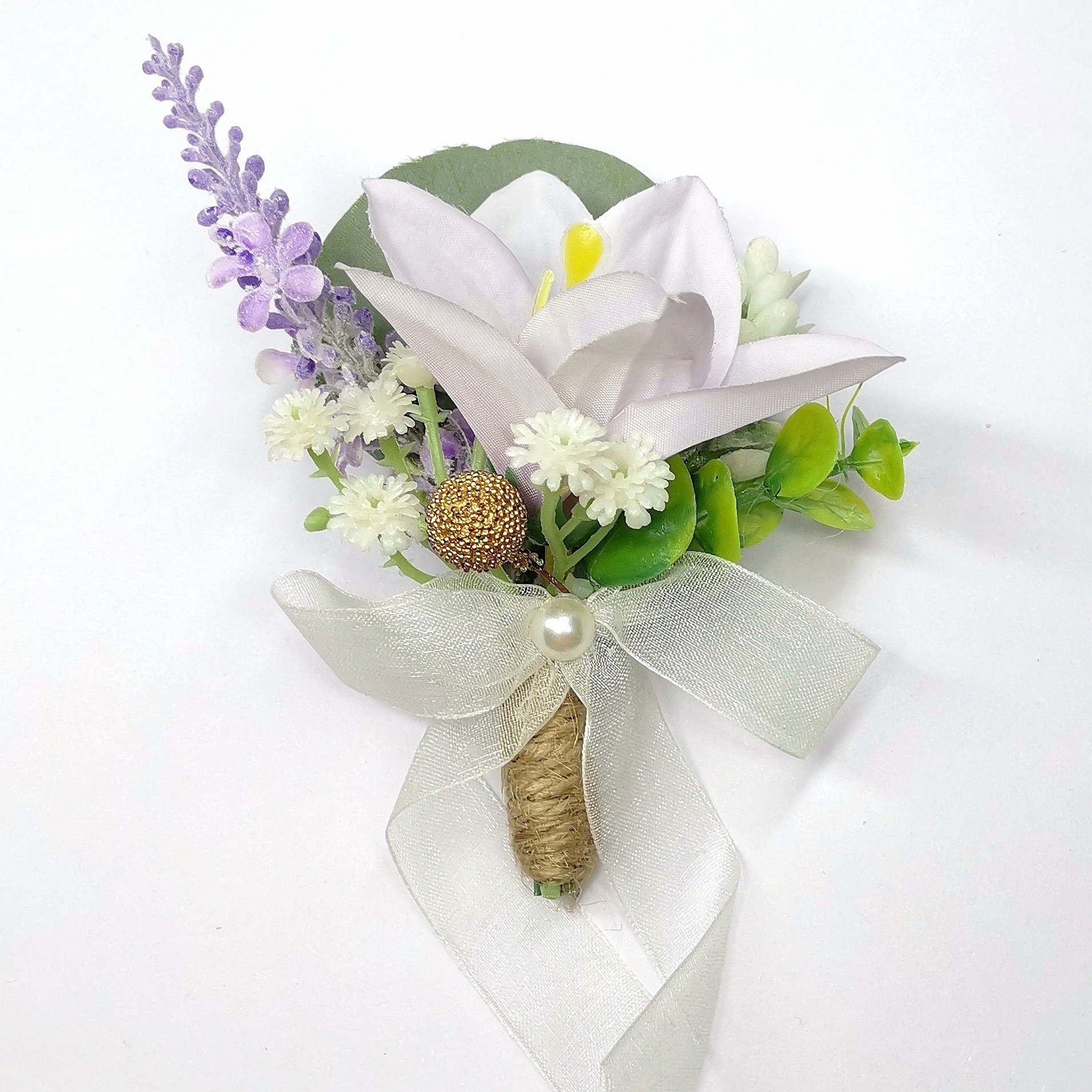 结婚胸花仿真百合胸花欧式伴娘高档婚礼伴郎迎宾嘉宾森系襟花