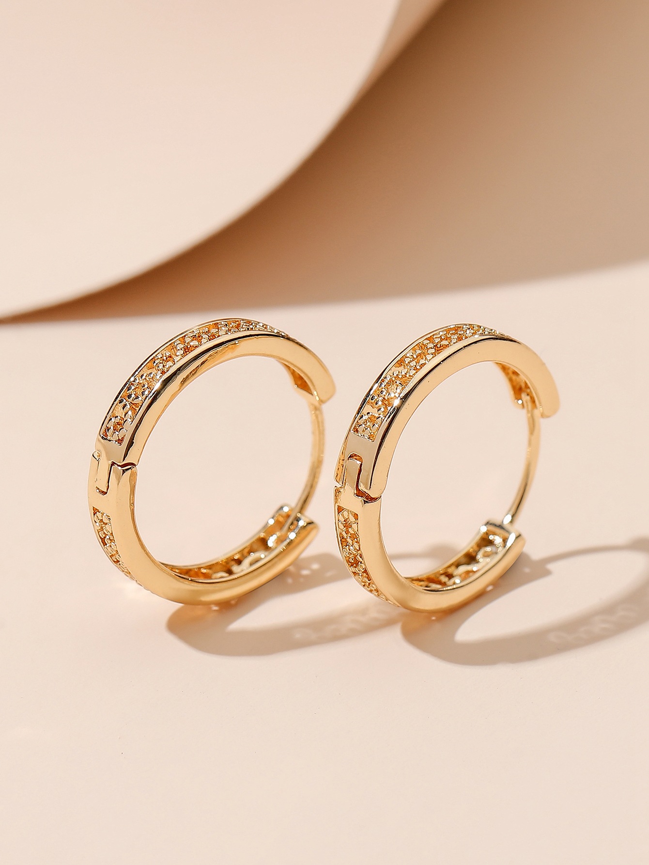 韩版圆形微镶锆石耳环 简约气质圆圈开口耳扣 金色圆环耳圈饰品女