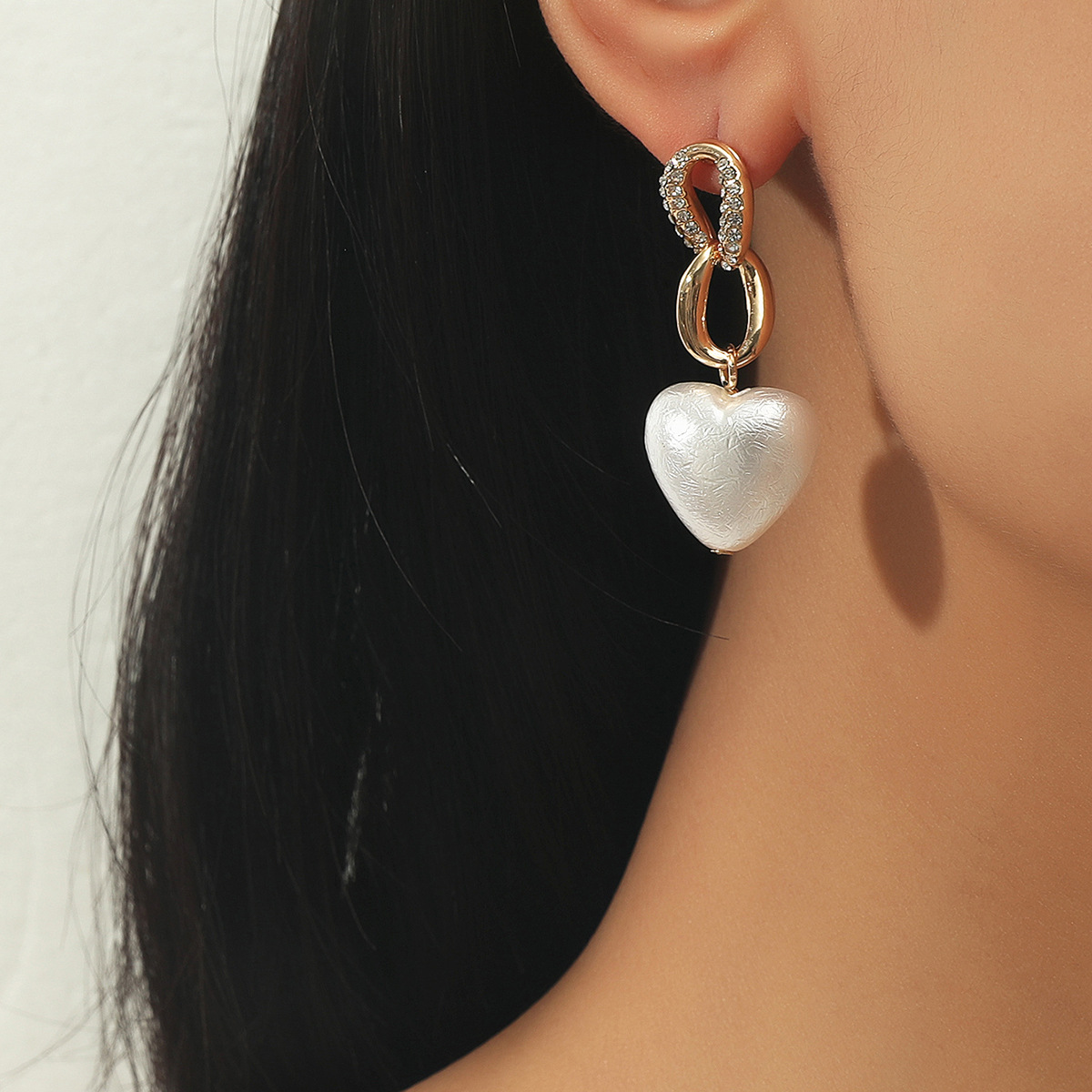 2021年新款珍珠幻彩立体爱心耳坠耳环韩国气质简约温柔耳钉耳饰