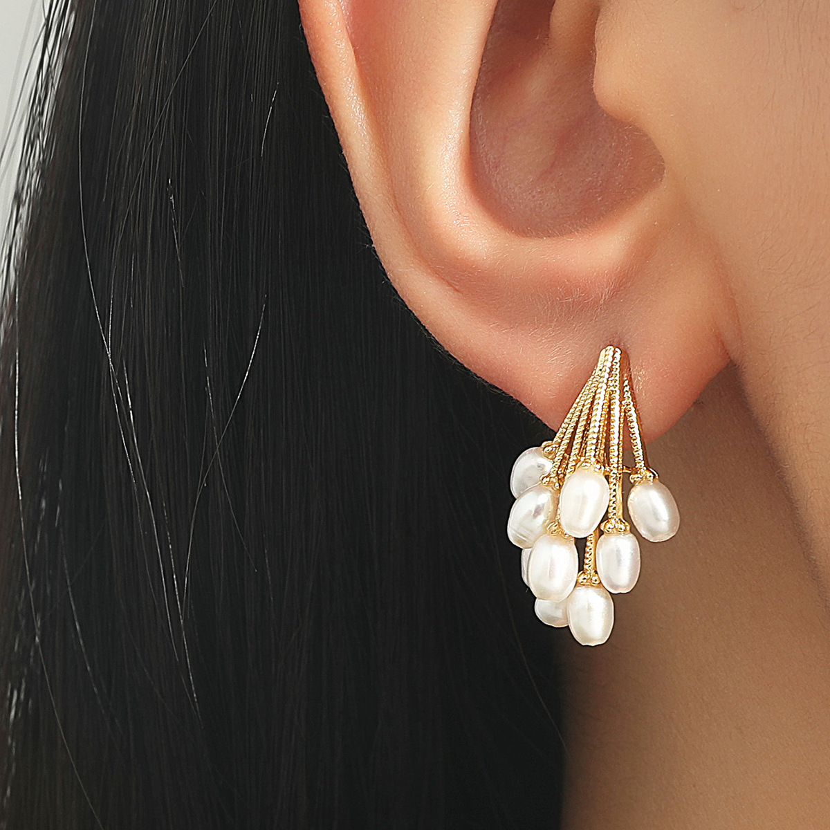 欧美跨境新款珍珠耳环缠绕巴洛克珍珠优雅时尚淡水米珠耳钉耳饰品