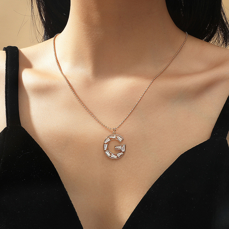 跨境流行欧美时尚26个英文字母项链 方形锆石项链锁骨链亚马逊