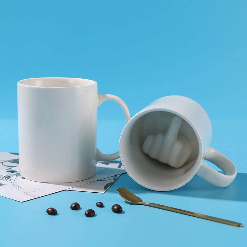 创意3D陶瓷杯搞怪中指杯手指杯新奇马克杯咖啡杯白色情侣杯嘲讽杯
