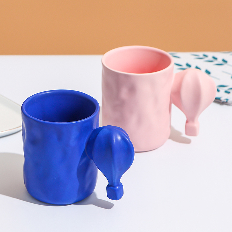 3D造型胖胖杯创意陶瓷杯新奇特马克杯情侣水杯 ins热气球彩色杯子