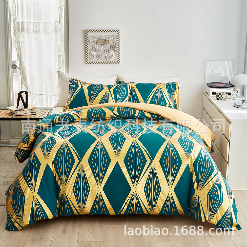 跨境家纺欧美床上用品外贸亚马逊速卖通烫金夹棉绗缝被子枕套套件