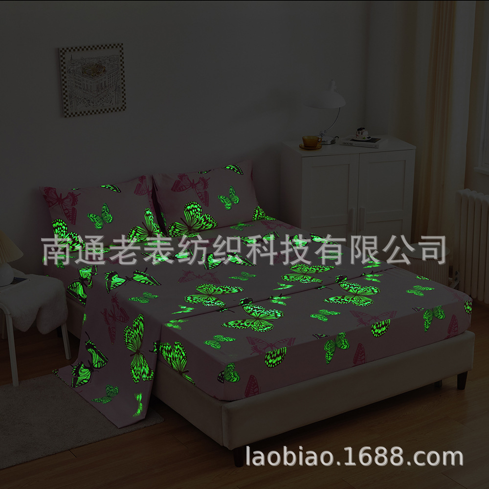 跨境货源美国英国尺寸亚马逊速卖通印花夜光系列床单床笠床罩套件