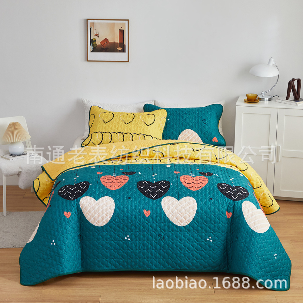 跨境家纺欧美床上用品外贸亚马逊速卖通印花夹棉绗缝被子枕套套件
